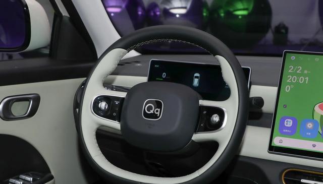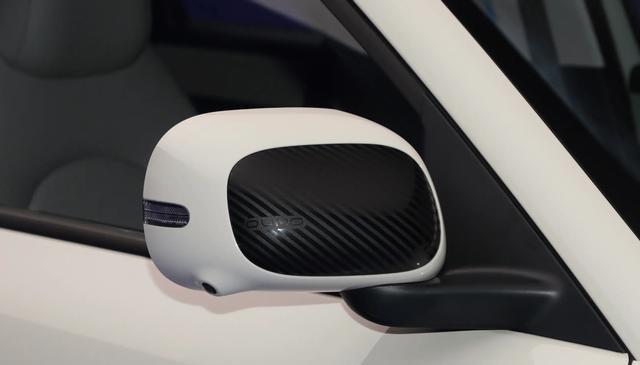 而且比起星愿、海豚这些车,奇瑞QQ3 EV既没有说去尝试增加更多车身面板弧度,也没有用与A柱相融合的引擎舱结构,而是使用着更为标准化的两厢车造型。要说找参照的话,它确实更像是过去的奥拓、雨燕。当然,无论是车身四角上比较精致的弧面,还是包括外露传感器、半隐藏门把手、双色外后视镜盖,乃至底盘边缘所形成的全覆式黑色包围,奇瑞QQ3 EV身上的这种精致科技感,还是能给10万级市场打个样的。